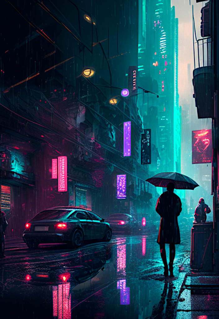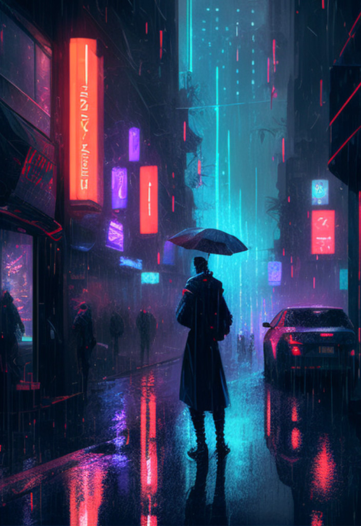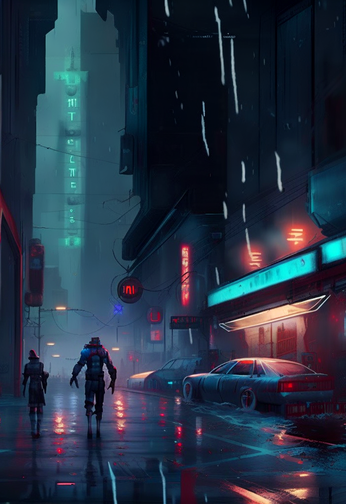 At the edge of Nexus City, the neon lights illuminate my face. The city is a sprawling metropolis, a concrete jungle where the streets are always crowded and the air is thick with ozone and smoke.