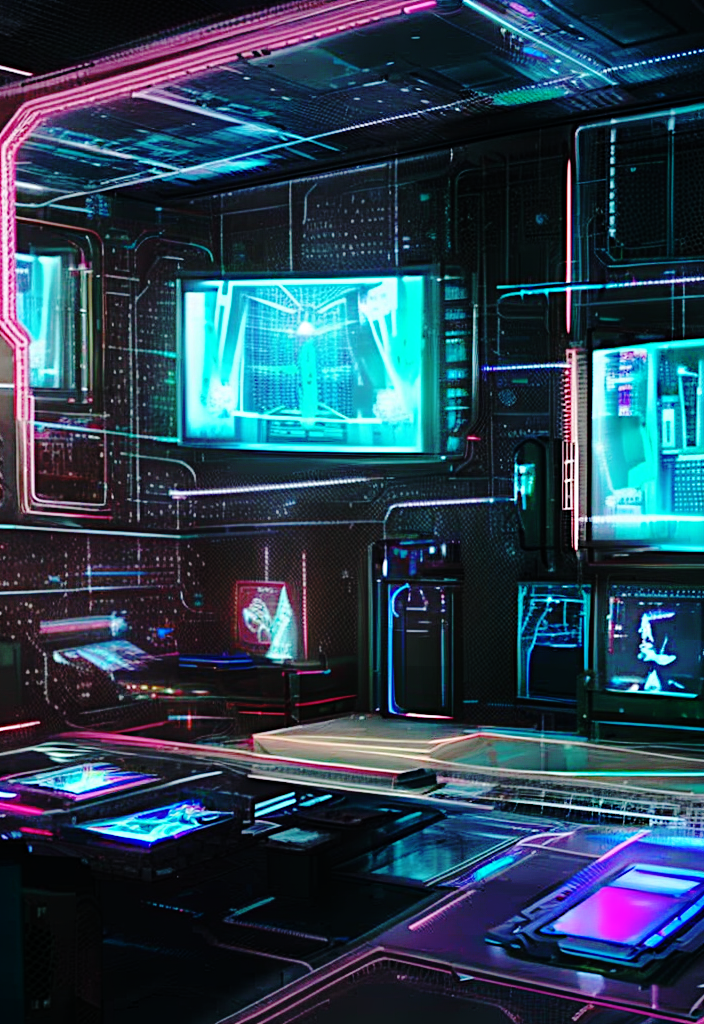 But it’s not just the city that’s high-tech – my home is a testament to the power of technology as well. The walls are lined with screens and holographic displays, displaying everything from the latest news to my personal messages and emails. My cybernetic implants allow me to interface with the systems directly, accessing any information I need with just a thought.